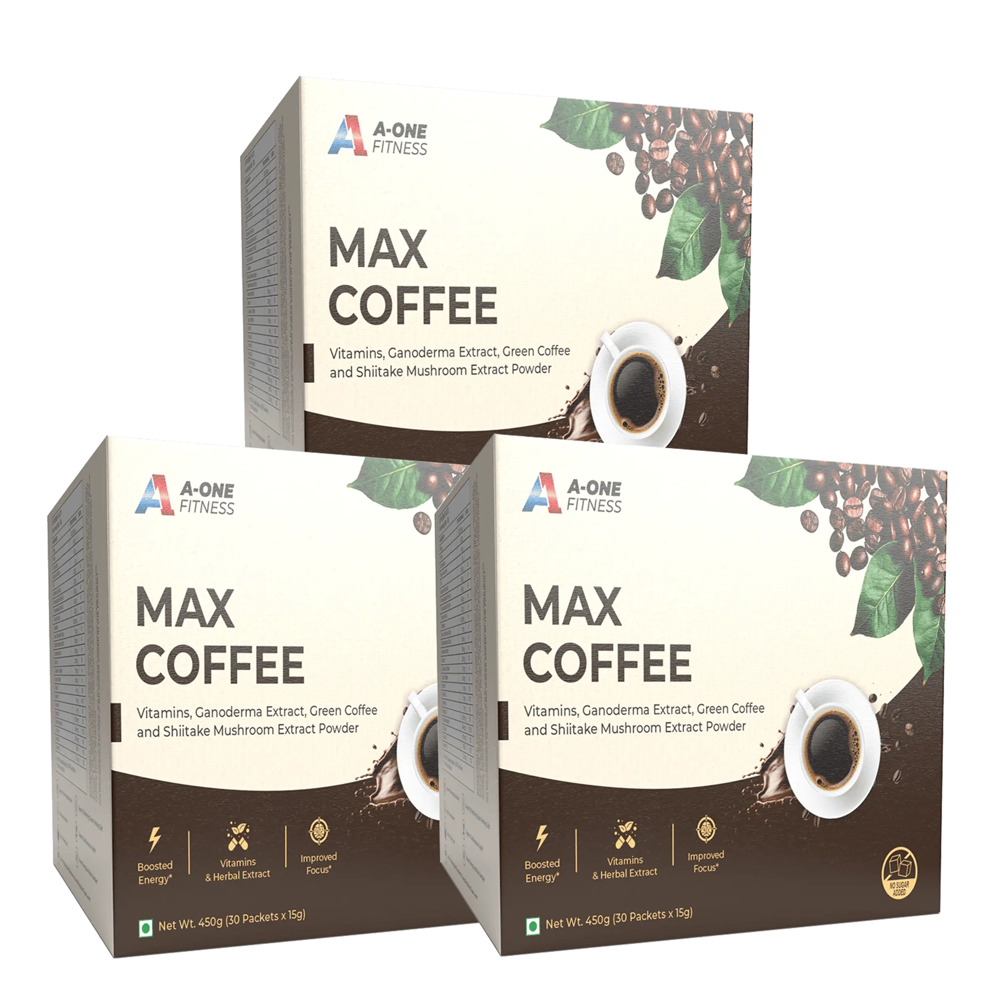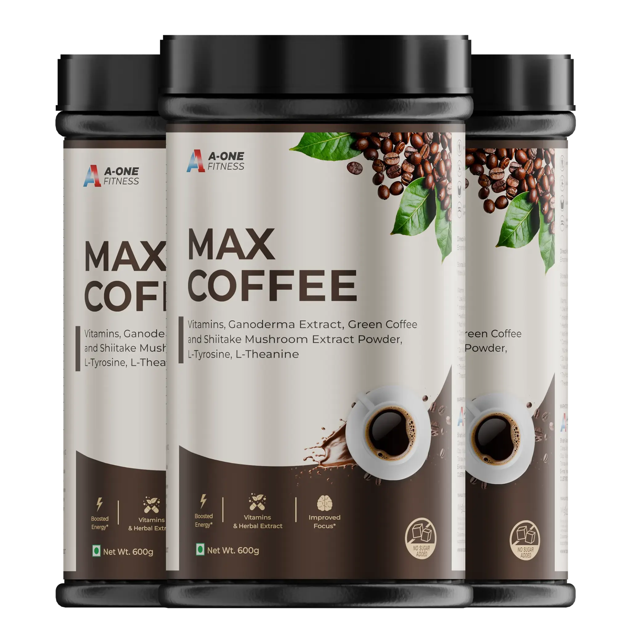 Max Coffee is a functional coffee blend with Ganoderma, Green Coffee, Shiitake Extract, L-Tyrosine, and L-Theanine to boost energy, improve mental focus, and support overall vitality.