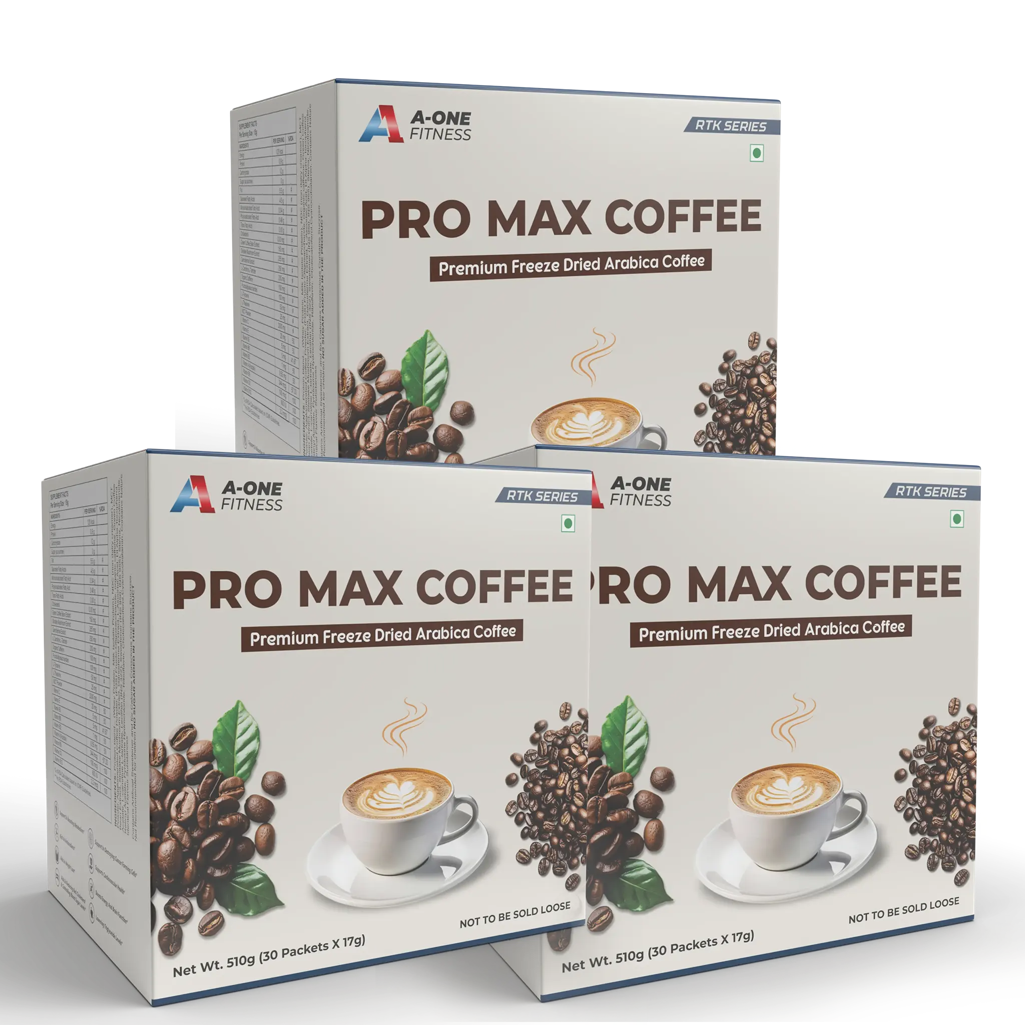 Pro Max Coffee is a premium freeze-dried Arabica coffee enriched with Green Coffee Bean, Ganoderma, and Shiitake Mushroom extracts, along with essential vitamins to support energy, focus, and overall wellness.