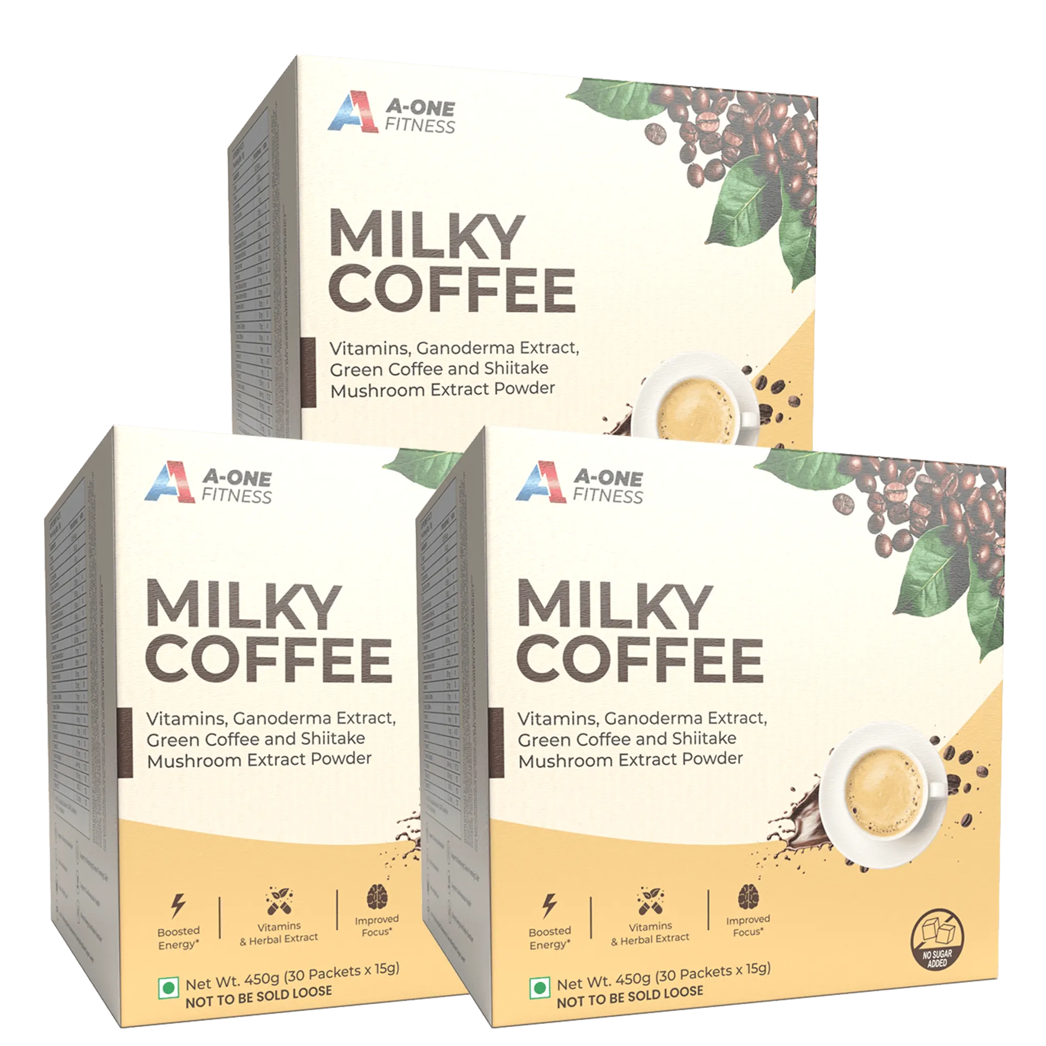 Milky Coffee is a delicious blend of coffee enriched with Ganoderma, Green Coffee, and Shiitake Mushroom Extracts. It supports natural energy, boosts focus, and enhances wellness with added vitamins and herbs.